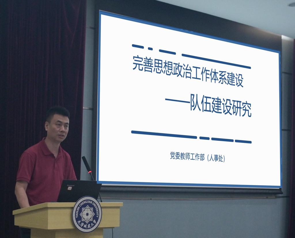 党委教工部部长高阳以“完善思想政治工作体系建设——队伍建设研究”为题,围绕高素质教师队伍建设、高素质思想政治工作和党务工作队伍建设、马克思主义学者和青年马克思主义者培养等方面介绍了近年来学校教师队伍建设情况以及工作开展过程中面临的问题。并就“如何充分发挥高层次人才师德师风示范带头作用”“发挥师德评价结果在绩效考核、职称评聘、评先评优等方面的正向引领作用”“进一步完善学校教师思想政治和师德师风建设体系”等和与会人员开展交流研讨。