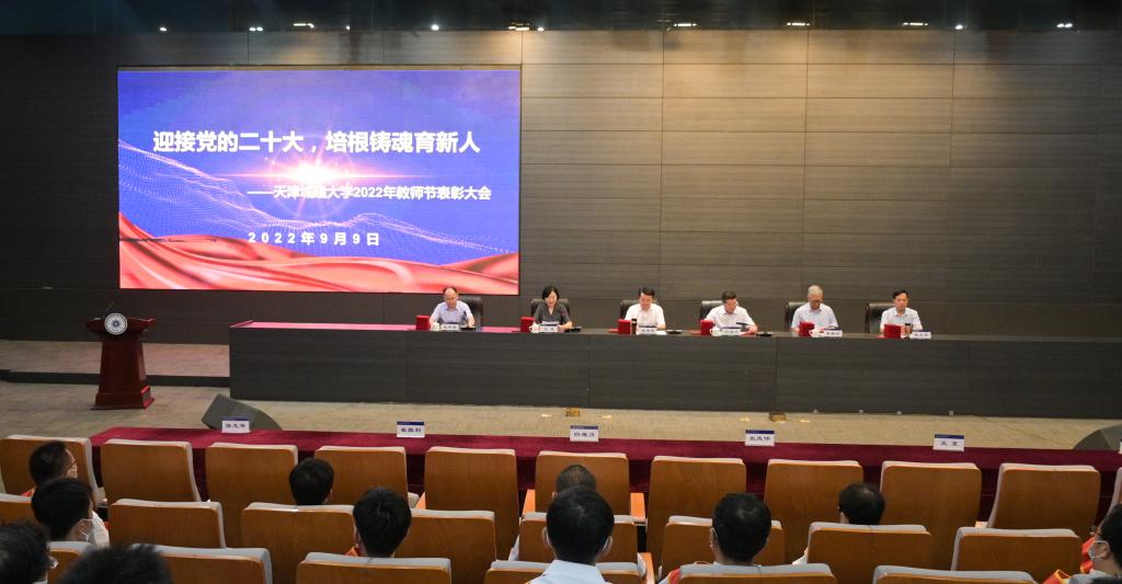 校党委书记史庆伟在讲话时,首先向全校教职工致以节日的问候和衷心地感谢,并总结回顾了学校近十年来在天津教育发展进程中各项工作取得的显著成就和进展。史庆伟强调,这十年,是学校教师队伍不断壮大、人才水平不断提高的十年;是学校各项事业加速发展、内涵提升的十年;是学校的党建和思政工作高质量发展的十年;是我们经历大事件、通过大考验、收获大成果的十年。史庆伟代表学校党委高度肯定了全体教职工辛勤耕耘、敬业奉献,为学校高质量发展做出的重大贡献。今年正值党的二十大召开之年,是学校发展中极不寻常的一年,是学校第二次党代会五年战略目标的关键之年,也是“十四五”发展承上启下之年。在高质量发展的关键时刻、吃劲时刻,史庆伟向广大教职员工提出希望和要求:一是要政治坚定,心怀国之大者,忠诚于党和人民的教育事业,自觉把党的教育方针贯彻到教学管理工作全过程。二是要涵养高尚师德,做“经师”“人师”的统一者,为党和国家培养更多可堪大用、能担重任的栋梁之才。三是要焕发精神、抢抓机遇、勇于担当,保持干事创业的不竭动力,努力建设高水平城建特色大学,以优异成绩迎接党的二十大胜利召开!