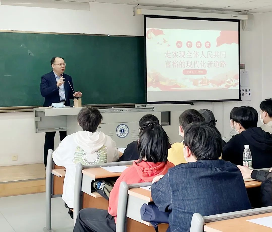 5月10日上午,副校长王中良以《走实现全体人民共同富裕的现代化新道路》为题,为伟德官网环境与市政工程学院学生讲授了一堂精彩纷呈的“形势与政策”课。