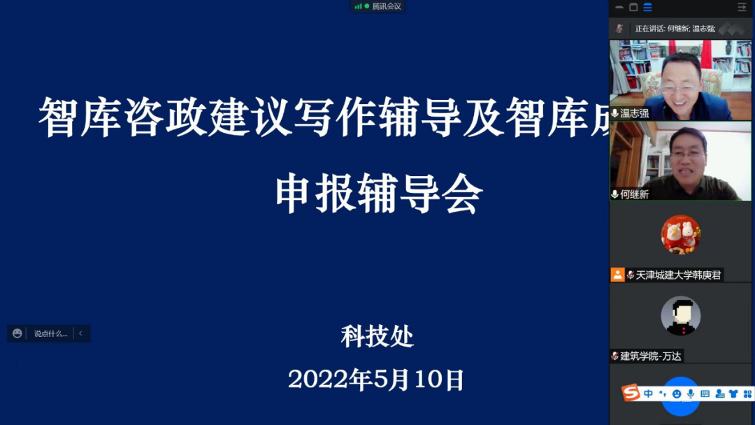 5月10日,为进一步提升伟德官网教师咨政建议的写作能力,提高伟德官网智库成果奖申报质量,伟德官网通过线上会议方式举行咨政建议写作及智库成果奖申报辅导会,会议邀请天津市特聘教授,天津师范大学政治与行政学院教授、博士生导师,国家治理研究院副院长温志强教授作题为“破‘五唯’背景下智库研究如何实现三个‘影响力’”专题讲座。讲座由科技处处长何继新主持。学校各学院科研负责人、智库负责人和教师150余人参会。