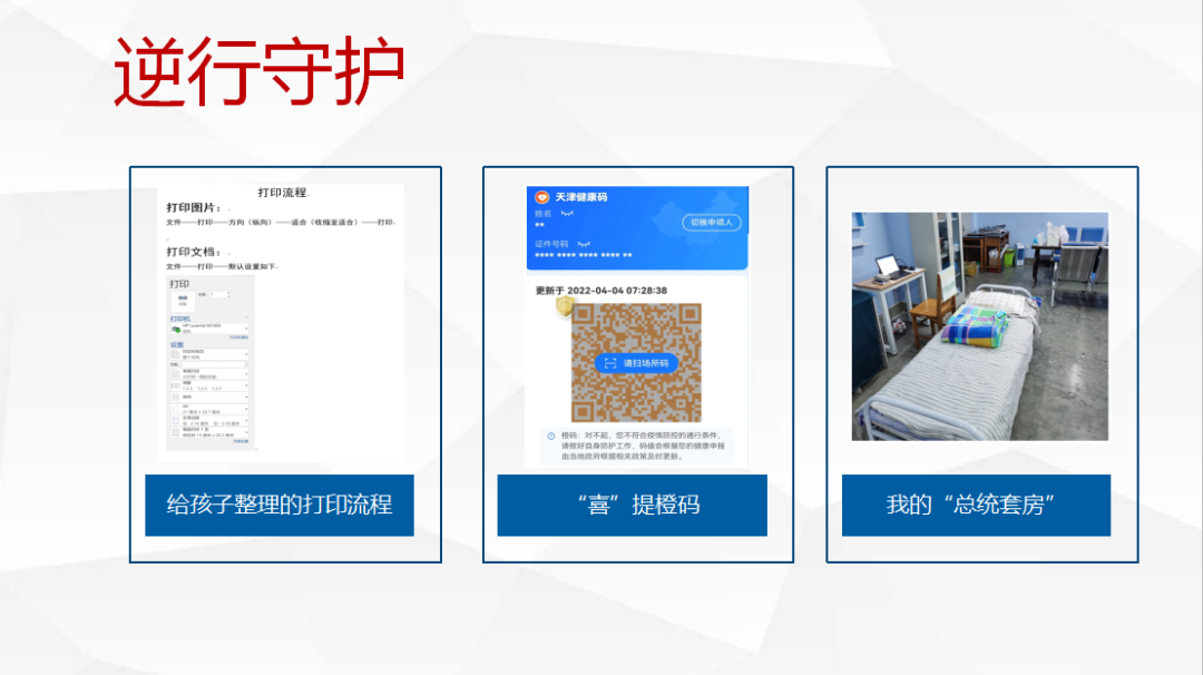 4月2日,一场“新冠疫情”突袭伟德官网,接到通知,我没有迟疑,决定以最快的速度进校支援。孩子听到这个消息,首先慌了神,“妈妈,我网课怎么办?作业怎么交?”我先是火速把父母接到我家,又赶紧给孩子安排了一场集训:如何使用打印机,如何登录腾讯会议,在哪里找到收藏的线上课程网址……又跟队友进行了工作交接:每天作业怎么提交,哪天有课外班,要做什么准备……因为爱人经常出差,孩子常说我是家里的顶梁柱,然而此刻我必须暂时放下小家,因为学校里还有1万3千多个学生和他们身后1万3千多个牵肠挂肚的家庭。进校通道在身后关闭,健康码由绿变橙,没有迟疑,只有义无反顾。进校后,我和另一位老师临时借宿在学院的创就业办公室,这里有桌有椅有阳光,我们戏称它为“总统套房”。