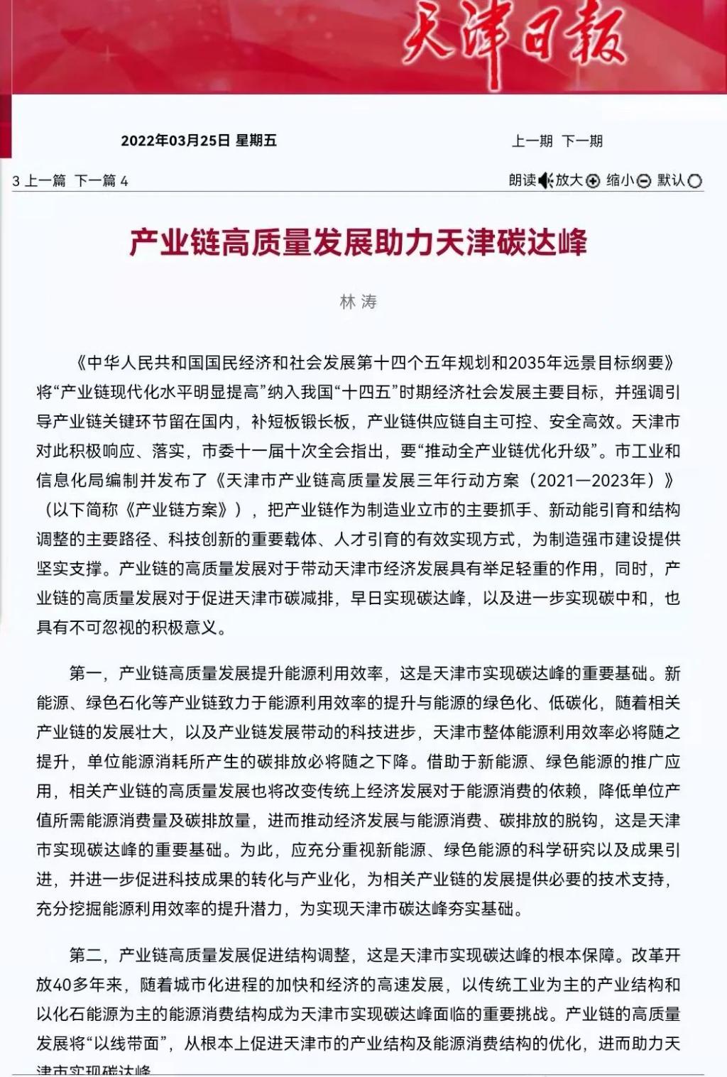 3月25日,《天津日报》刊发伟德官网经济与管理学院林涛老师理论文章《产业链高质量发展助力天津碳达峰》,文章全文如下: