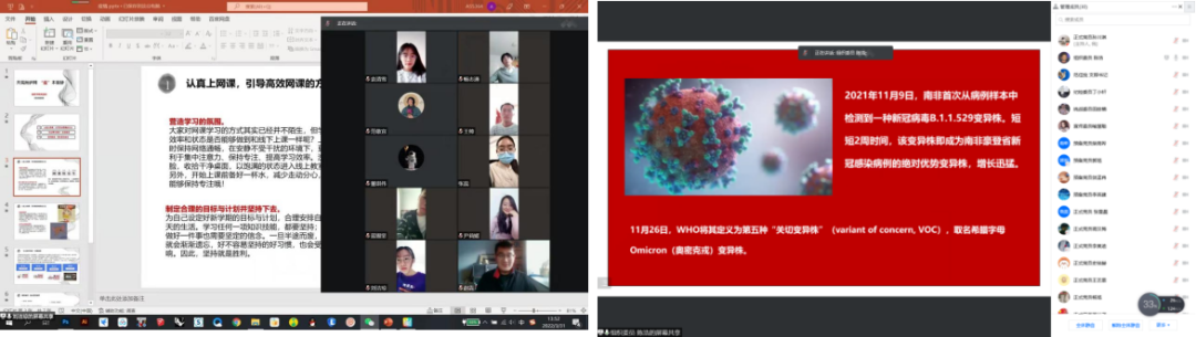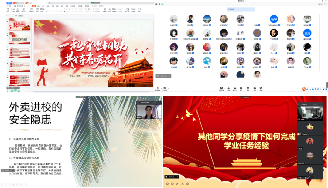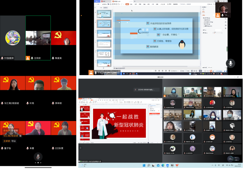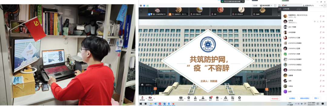 部分“红旗班宣讲团”成员将班级阵地作为宣讲主战场,计算机学院学生党员刘致浦等同学通过腾讯会议为班级开展疫情防控微宣讲,分别从学校防疫政策、在校学生如何做好日常防护、居校防疫期间应如何保持心理健康等方面向同学们进行宣讲。使同学们更加深刻理解了学校疫情防控相关规定,也纷纷表示会积极配合学校的防疫措施,加强自我管理,为科学防疫尽一份力。