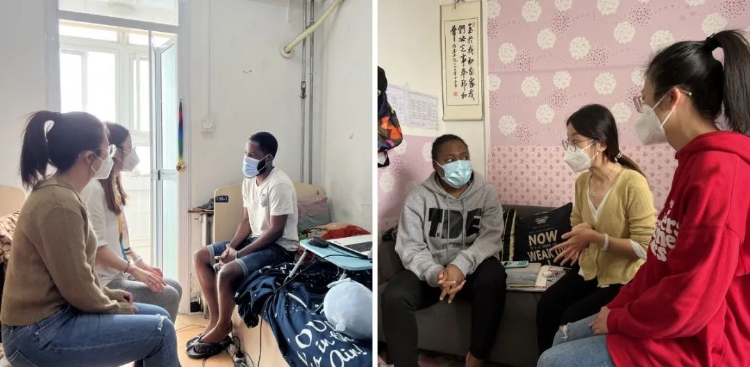 校园封闭管理期间,学院工作人员每天楼上楼下来回穿梭。用餐时是勤劳的搬运工,及时将三餐及饮用水送给留学生;核酸检测时是可爱的大白,有序组织留学生核酸检测;每天定时消杀又变身为防疫安全员,进行公寓内部、公共区域和宿舍消杀通风;学院每位工作人员都是留学生的知心家人,通过各种方式及时细致回应他们关心关切的问题,正面宣传疫情防控各项政策,关注他们的情绪变化;为确保境内外留学生学习质量,工作人员深入所有课程的线上课堂,及时关注留学生线上学习情况,协调解决出现的问题。