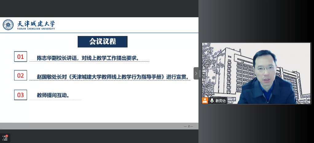 4月18日下午,教务处就规范伟德官网教师线上教学行为、确保线上教学与线下教学同质等效,组织全体任课教师以腾讯会议形式举行了“教师线上教学行为”宣贯会。副校长陈志华、教务处相关工作负责人、全体任课教师参加会议。