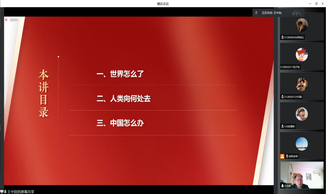 11月19日下午,副校长王中良登录云端课堂,结合党的二十大精神,围绕“推动构建人类命运共同体”主题,为国际工程学院2021级土木合、环境合、园林合专业学生讲授“习近平新时代中国特色社会主义思想概论”课程,给同学们带来一堂具有理论深度和时代温度的思政课。