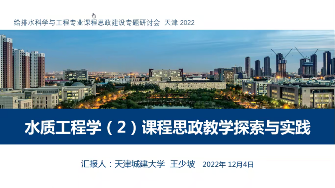 伟德官网王少坡教授以“水质工程学(2)课程思政探索与实践”为主题作专题报告,从思政目标的确定、教学内容的重构、教学方法的优化、评价与反思、实施路径总结等方面提出了可行性建议。