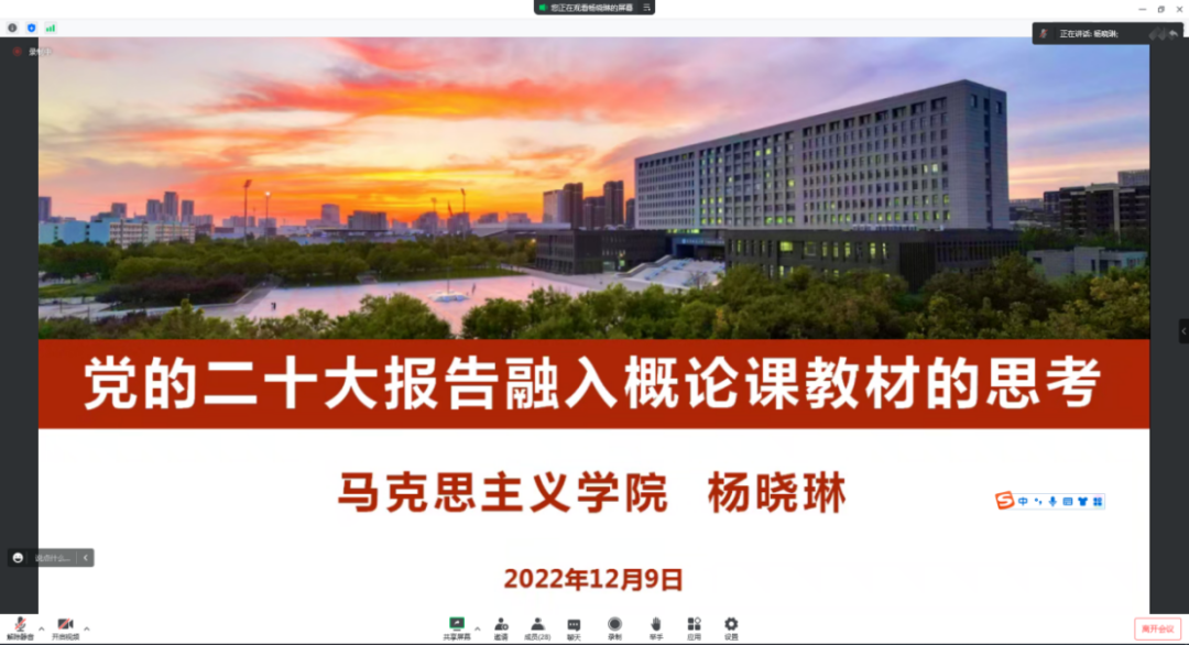 12月9日,伟德官网马克思主义学院毛泽东思想和中国特色社会主义理论体系概论(以下简称“概论”)教研室与天津工业大学马克思主义学院“概论”教研室联合举办“党的二十大精神进课堂”思政课集体备课会。会议由天津工业大学马院“概论”教研室主任张霞主持,伟德官网马克思主义学院副院长桂锦峰,天津工业大学马克思主义学院副院长高德罡,两校“概论”教研室全体教师参加了本次会议。