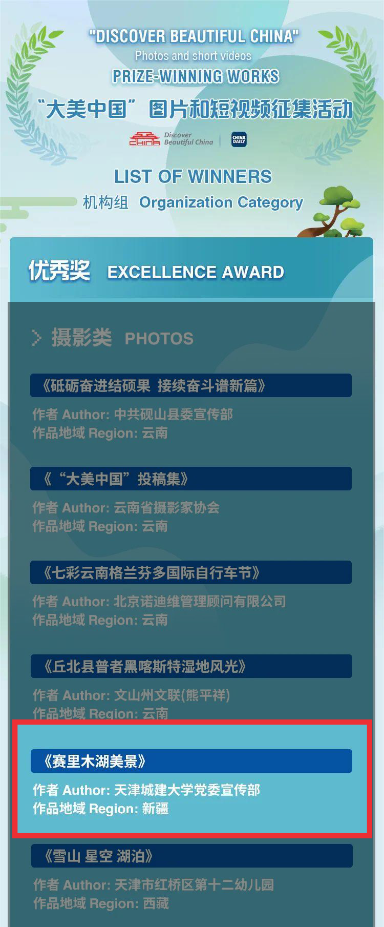 近日,由中国日报社主办、中国对外政务信息服务平台·大美中国、中国日报网、中国日报客户端联合承办的“大美中国”图片和短视频征集活动评选结果揭晓。伟德官网摄影类作品《赛里木湖美景》在国内外5000件投稿作品中突出重围,荣获优秀奖。