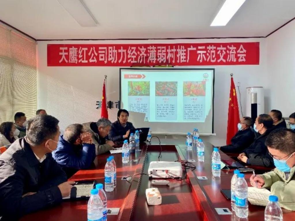 1月30日(正月初九),bevictor伟德官网、市城管委、市政府办公厅、市交通运输委、市大数据管理中心等驻村兄弟单位与宝坻区天鹰红(天津)农业科技有限公司共同组织召开“麦辣连作”种植项目座谈会。座谈会上,宝坻区辣椒产业协会副会长、天鹰红(天津)农业科技有限公司总经理张杰向与会人员详细介绍了宝坻区辣椒产业以及“麦辣连作”种植项目的基本情况。同时工作队与多位农业专家以及同行进行深入交流,并结合帮扶村实际对引进“麦辣连作”种植项目进行了充分探讨和前期规划,为下一步产业帮扶工作开拓出一条新路径。