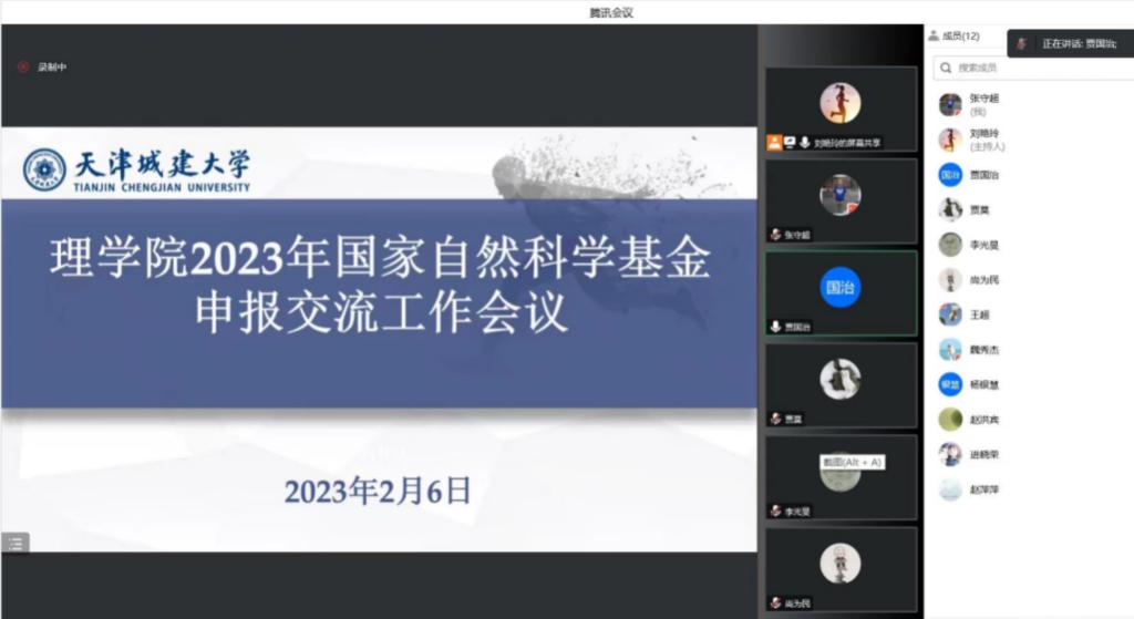 2月6日上午,理学院在线召开2023年度国家自然科学基金申报交流会议,院长贾国治及拟申报基金骨干教师参加会议,会议由学院科研秘书刘艳玲主持。