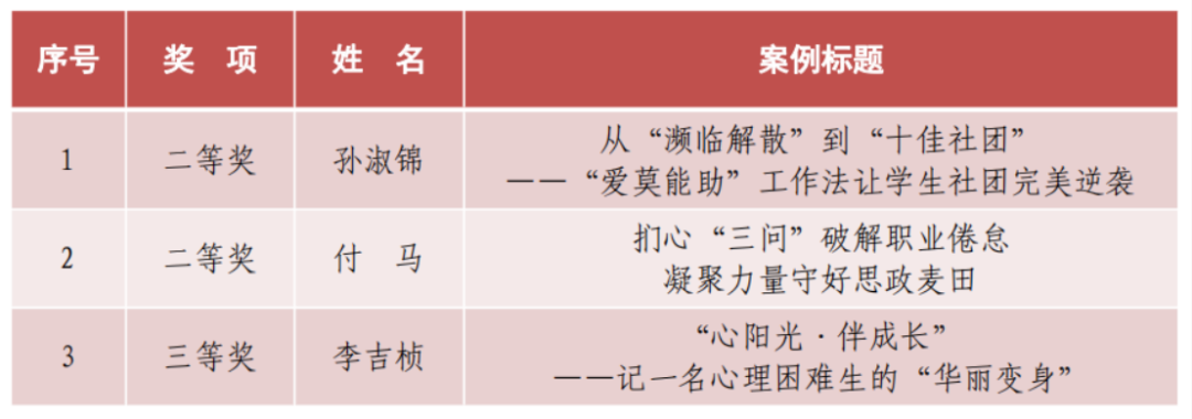近年来,学校始终高度重视辅导员队伍建设,辅导员工作优秀案例评选作为其中的一项重要举措,旨在推动广大辅导员扎根学生工作一线,立足工作实践,不断创新大学生思想政治工作的新模式、新方法。后续,学校将以此为契机,通过辅导员实务工作坊、辅导员论坛等形式,建立辅导员工作案例研讨常态机制,围绕学生工作热点、难点问题开展理论研究和实践探索,积极搭建辅导员成长平台,不断强化理论素养和科研水平,为学校人才培养和高质量发展贡献力量。