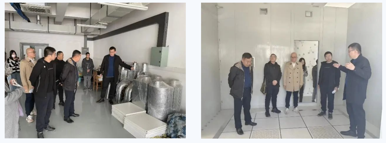 随后,杨斌院长及师生陪同第五季环境科技有限公司参观了实验基地,详细介绍了相关实验设备,并探讨了基于当前实验平台如何共同推动新型新风机组的研发与推广工作等问题。