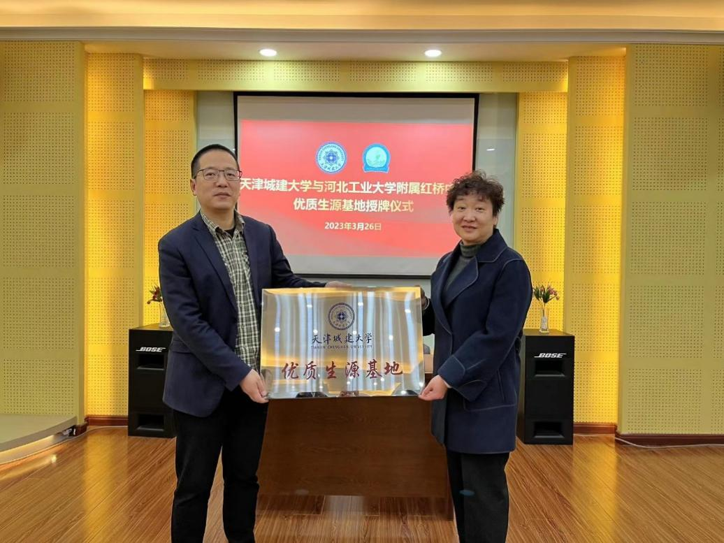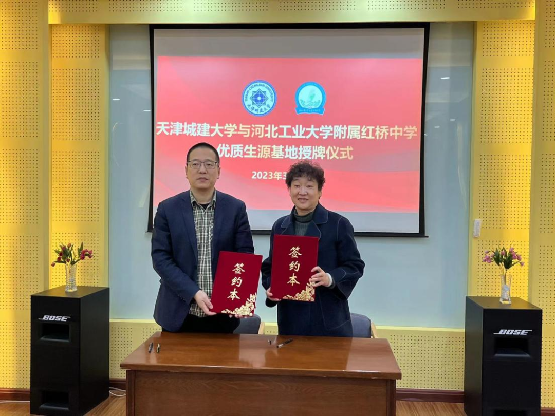 近日,伟德官网参加了在天津市第三中学召开的面向红桥区中学的高考招生咨询会,并在现场与河北工业大学附属红桥中学(原天津市第五十一中学)进行了优质生源基地的签约、授牌仪式。城市艺术学院院长张小开代表学校参加仪式,河北工业大学附属红桥中学党委副书记、校长孙鸿毅出席。招生办公室主任赵国敏、副主任陈烜、城市艺术学院院长副院长王璞等也一同出席了签约仪式。