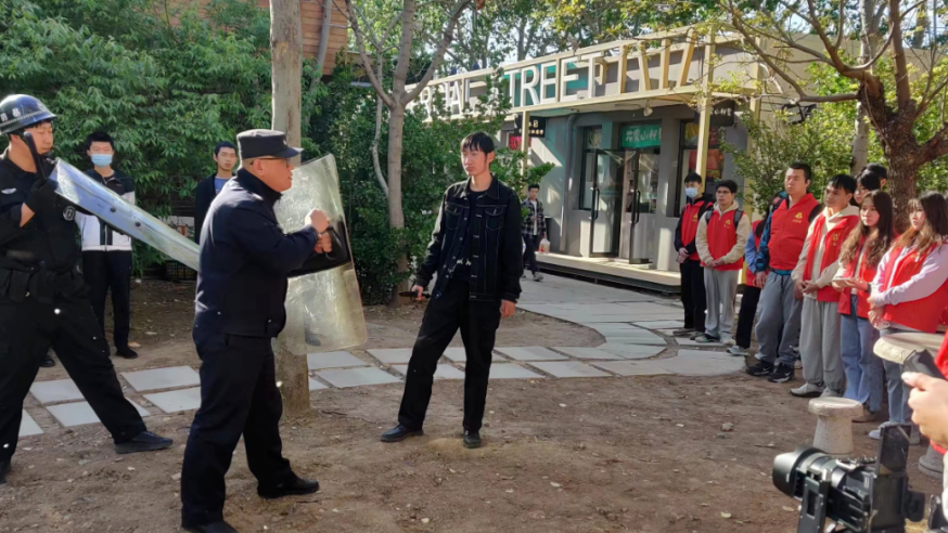 4月7日,学校在煦园商业街举行应急演练。“大家快跑!这里有人抢劫!”现场师生按照学校应急预案立即启动应急响应,在保护好自身,积极、耐心与“歹徒”周旋的同时,及时报警;闻讯后,驻校民警、安保人员立即到达现场,会同现场师生迅速、及控制现场和“歹徒”。演练结束后,学苑派出所陈智警官结合校园实际,向现场师生讲授了反恐、防暴有关知识,提示人身防范注意事项,并与现场师生交流互动,演示防暴器械的使用技能。