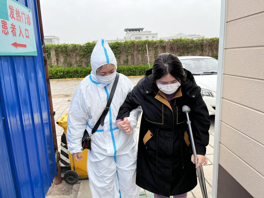 2022年4月疫情防控期间范佳悦带腿摔伤的高烧学生闭环送去医院