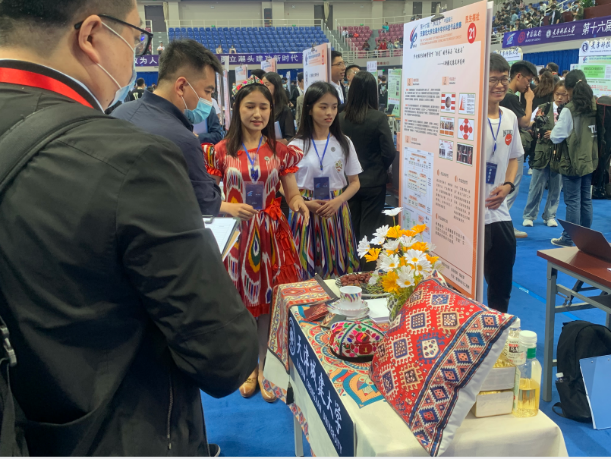 麦合甫热提·哈里木拉提参加“挑战杯”大学生课外学术科技竞赛场景