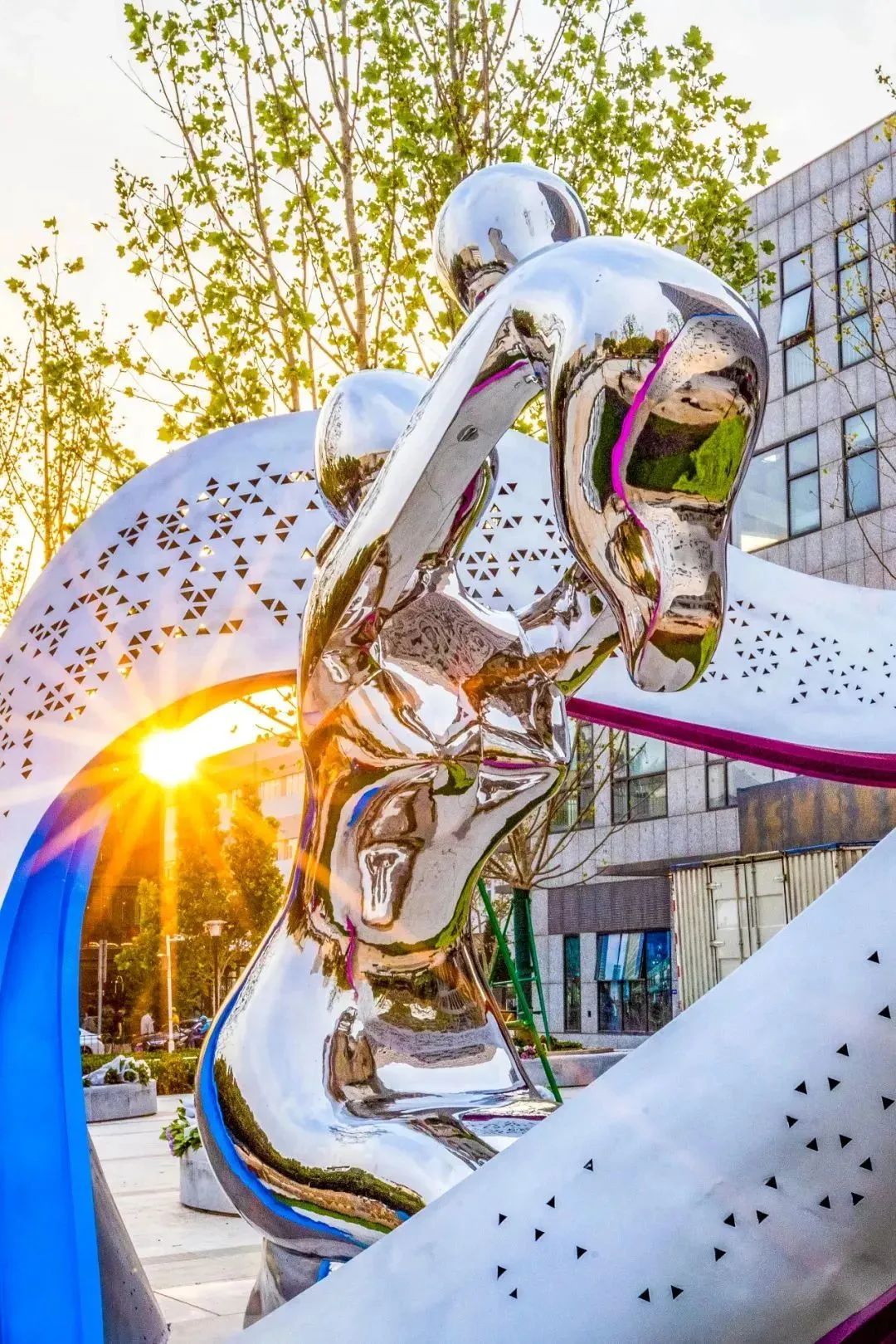 5月14日,天开高教科创园主雕塑在核心先导区——天津科技广场南广场树立完成,莫比乌斯环围合“母育子”的形象寓意“天开”的未来拥有无限可能。