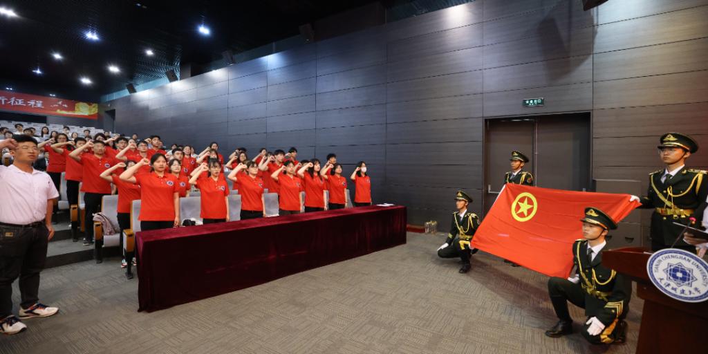天津学联学生会骨干党的二十大精神宣讲团成员、校研究生会主席冯磊带领“薪火班”第五期学员与新发展团员代表重温了入团誓词。