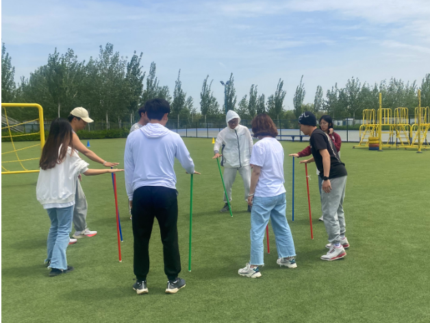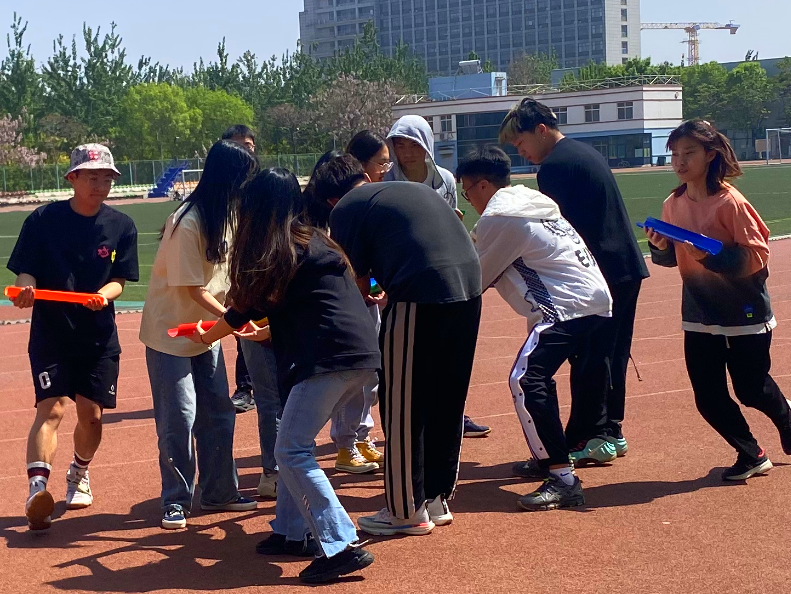 心理运动会中同学们体验“不倒森林”“能量传输”特色项目