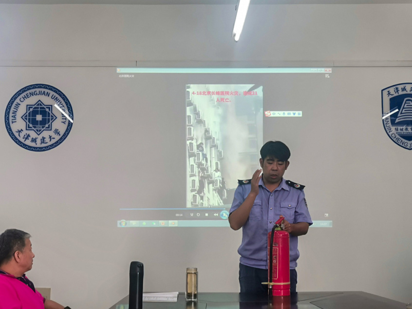 张勤从火灾事故典型案例入手,给全体教职工系统讲授了日常生活中如何预防火灾、扑救初期火灾、使用消防器材、逃生等消防知识。