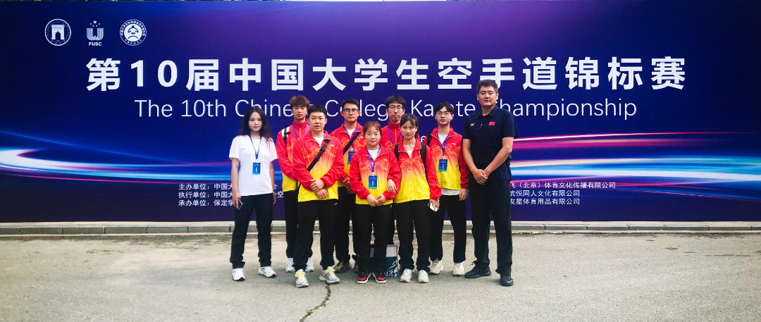 本次参赛队伍由体育部主任王建华带队,李正任教练,张国庆、刘鸿宇、王志檀、肖逸雲、张勋燕、李照怡、孔鹏发、罗文竹8名学生组成空手道代表队,代表伟德官网出征。