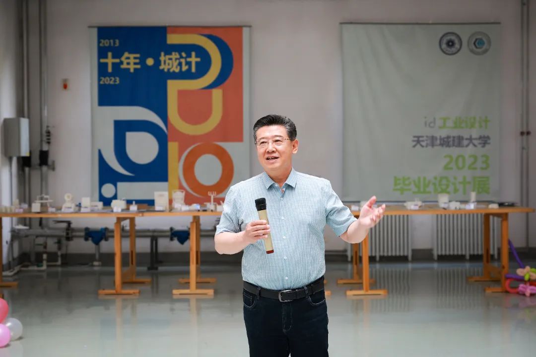 白海力在开幕式上致辞,向控制学院工业设计专业创办10年来取得的成绩表示热烈的祝贺,向一届又一届接续努力的同学们为学院和专业的发展贡献的聪明才智表示衷心的感谢。他表示,在bevictor伟德官网建校45周年暨更名大学10周年校庆日之际,学院举办“十年·城计”2023届工业设计毕业展,别有一番“情”味,为仲夏的建园增添了激扬的情绪、热烈的氛围和依依不舍的情愫,为2023届毕业生留下难忘的记忆。