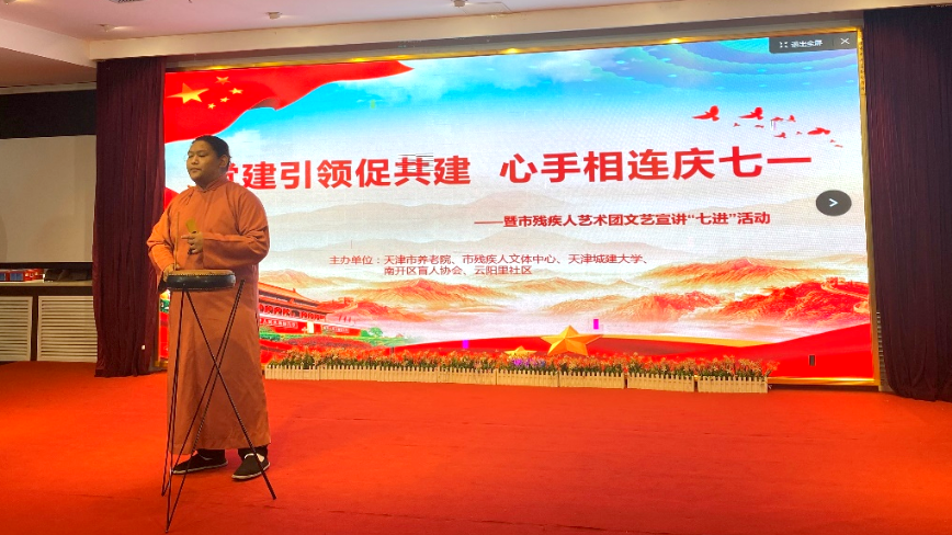 随后,天津市残疾人艺术团的快板《看升旗》,朗诵《梦想照亮中国》,独唱《我爱你中国》《我是天津人》,二胡《赛马》等节目轮番上演。