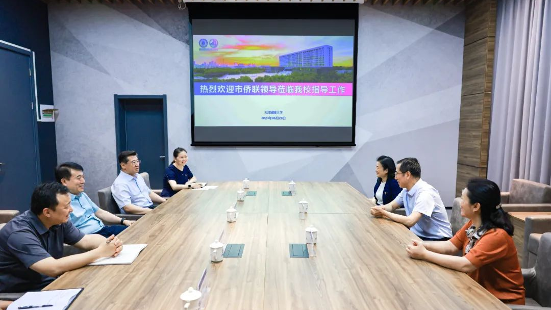 6月28日,天津市归国华侨联合会党组书记、主席李占勇,党组副书记、常务副主席、一级巡视员陈钟林一行来校交流指导。校党委书记史庆伟,校党委副书记、校长白海力出席。