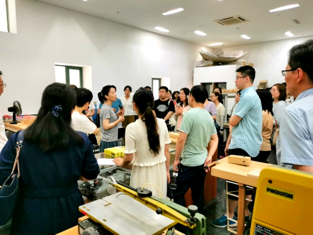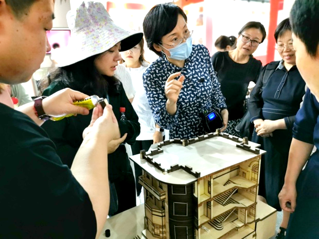 在革命丰碑展馆的红色劳动工坊,学员们对伟德官网将红色资源保护利用融入第一课堂和第二课堂、将思政教育和劳动教育相融合的教学与实践情况进行了调研,对学生在建筑测绘、中国建筑史等课程中制作红色旧址木工实体模型的劳育实践环节产生了浓厚的兴趣,深入了解学生利用激光切割等手段设计、制作红色旧址复原模型的工艺原理和加工流程,学员代表还分组进行了沉浸式模型构件的安装体验,更加活跃了本次现场教学的气氛。通过参观学员们对进一步开展红色资源保护工作的迫切性和重要意义产生了巨大的共鸣,对探索红色资源的保护利用与高校科研与教学相结合的有效路径进行了深入思考。