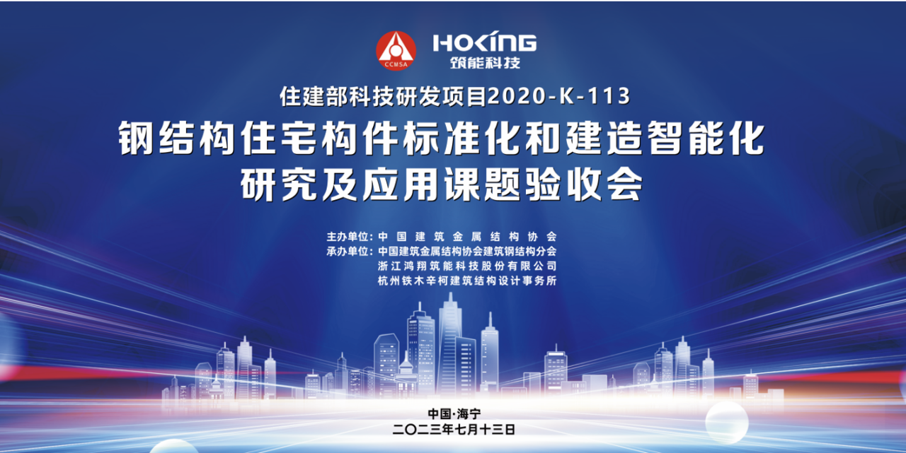 受住房和城乡建设部标准定额司委托,2023年7月13日由住房和城乡建设部建筑市场监管司推荐,中国建筑金属结构协会牵头的住建部科学计划项目“钢结构住宅构件标准化和建造智能化研究及应用” 验收会在浙江海宁召开。会议由住房和城乡建设部科技与产业化发展中心科技成果转化独立研究员、《建设科技》杂志副总编辑许利峰主持。