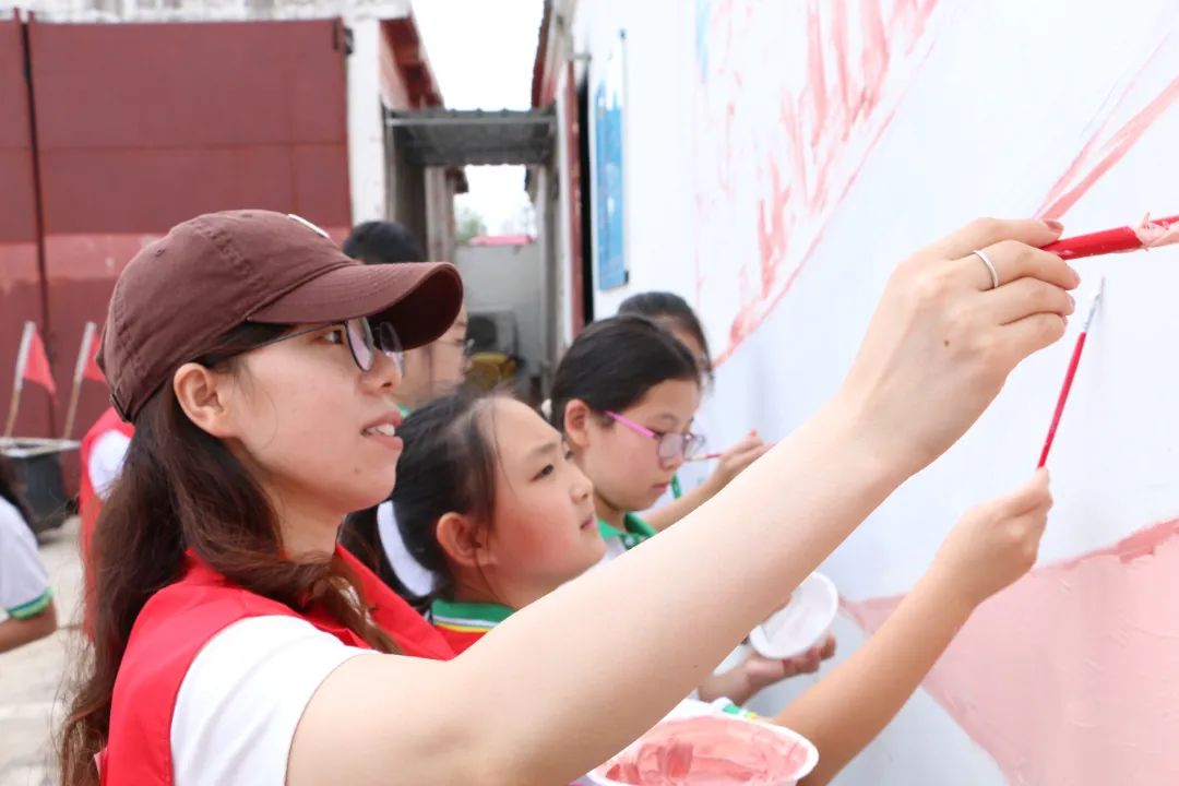 之后,实践团队与当地党员、村委会人员、小孙庄小学的学生组织召开交流座谈会,对当地基本情况、建设发展以及目前存在困境开展调研;会后,实践队员们开展洁净乡村、美化乡村等志愿服务,在服务过程中,邀请小村庄小学的学生们一起参与到志愿服务活动中,合力绘就红色文化主题展墙1面。