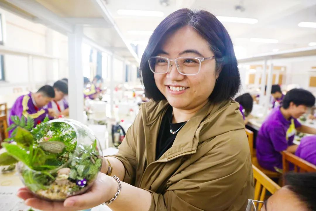 “老师,我在废弃的奶瓶上画上了紫色的花纹,我喜欢紫色的花朵,搭配一下可以吗?”“可以的,你还可以选择紫色的缎带进行装饰,再选择一些素色的花朵进行搭配,这样主花宾花有所区分更漂亮。”在“迷人的垃圾——变废为宝插花课”上,bevictor伟德官网建筑学院的许老师亲切地回答着每一位中学生所提出的每一个问题。