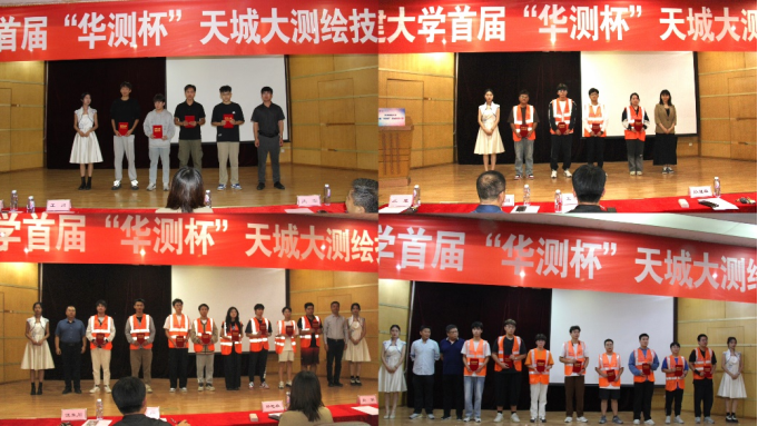 首届“华测杯”天城大测绘技能大赛在鸣飞堂一楼闭幕,校团委书记孙旭卓,教务处副处长苑宏英,党委学工部副部长、校团委副书记王菲,王闯,地质与测绘学院党委书记尚军、汪东川、王志恒、总裁判长高伟、组长黄旭东,组委会成员及参赛学生参加。闭幕式由向瑛主持。