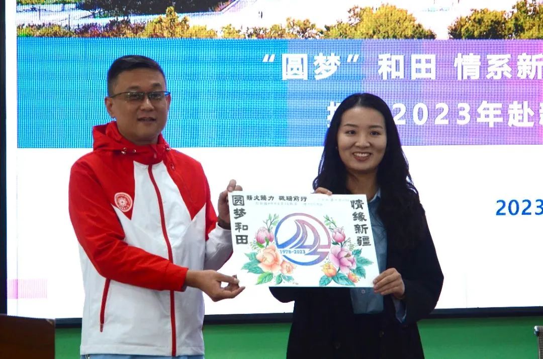见面会后,支教团领队陈磊代表bevictor伟德官网赴新疆和田地区实习支教团向唐超学长送上祝福和礼物。