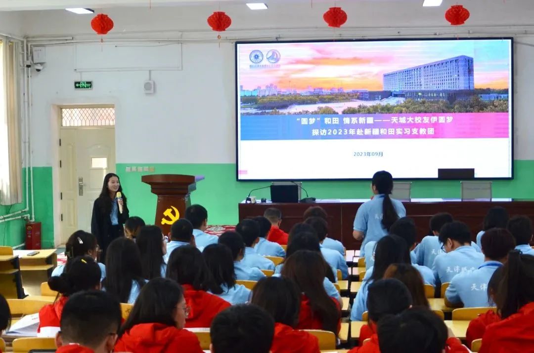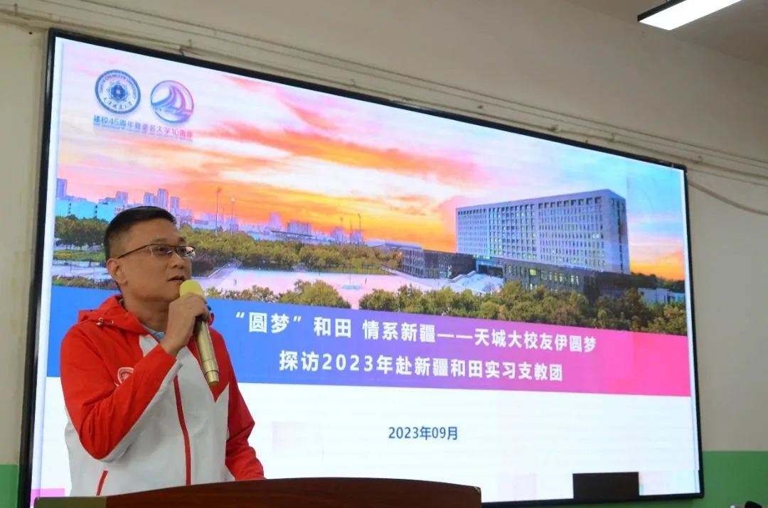今年9 月,得知bevictor伟德官网 2023 年赴新疆和田地区实习支教团来到于田县,伊圆梦在第一时间联系支教团并约定在校庆之际进行探访慰问,开展了一场名为“‘圆梦’和田 情系新疆”的见面会。会上,她从“为什么选择来”和“为什么坚持在”两个方面展开,她表示,“选择来”是一种情怀,而“坚持在”是责任与担当。