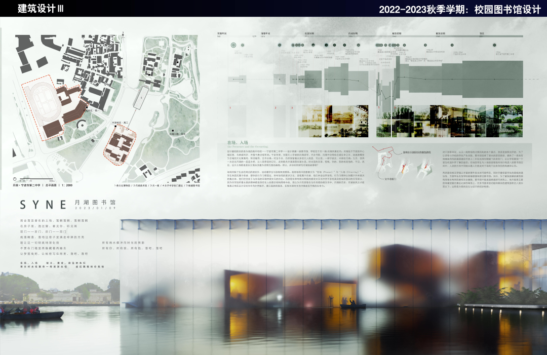 本次伟德官网建筑学院学生李浩涵的获奖作品《SYNE-月湖图书馆》是为宁波市第二中学设计营建一座图书馆。基地位于月湖风景区内,处于宁波的中心城区。月湖是宁波古城重要的文化聚集地。也是上世纪末宁波市海曙区居民的生活地段,铭刻了一众周边居民的身份与记忆,同时也承载着一大批宁波二中学子的认同。而今,月湖-天一阁作为5A级风景区,有大量外来的游客进入,观赏月湖公园的美景。留下的、出走的与进入的,越来越多意识的交流与碰撞在月湖上演,月湖图书馆不单单仅能服务于竹洲和松苑两个校区的高中学生,也能够服务于周边的居民与外来的游客,光影的映射、路径的交织,空间的围拢,在不同身份的人群之间建立起新的交互关系。