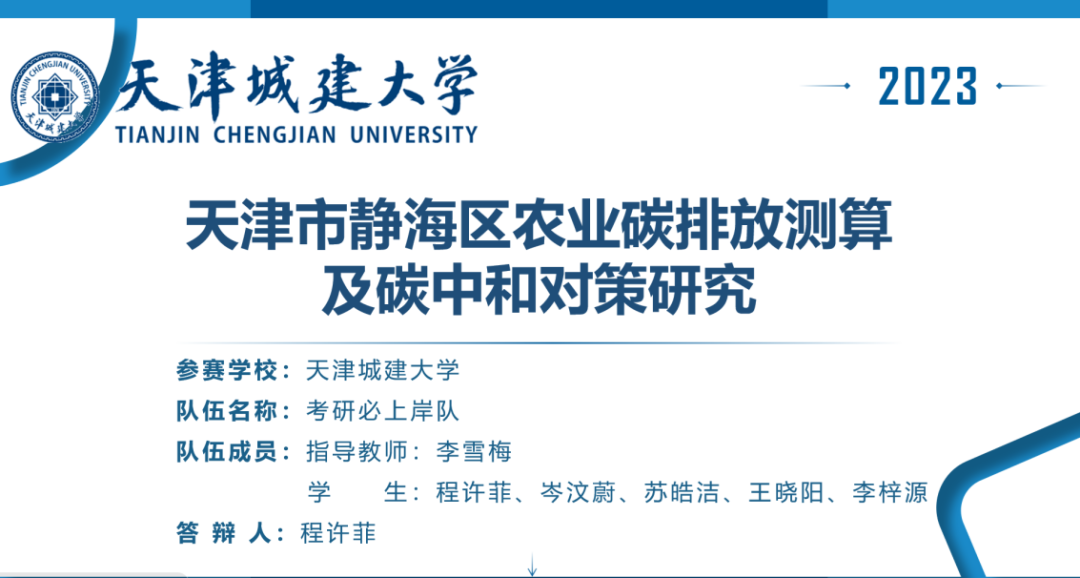 一等奖 天津市静海区农业碳排放测算及碳中和对策研究