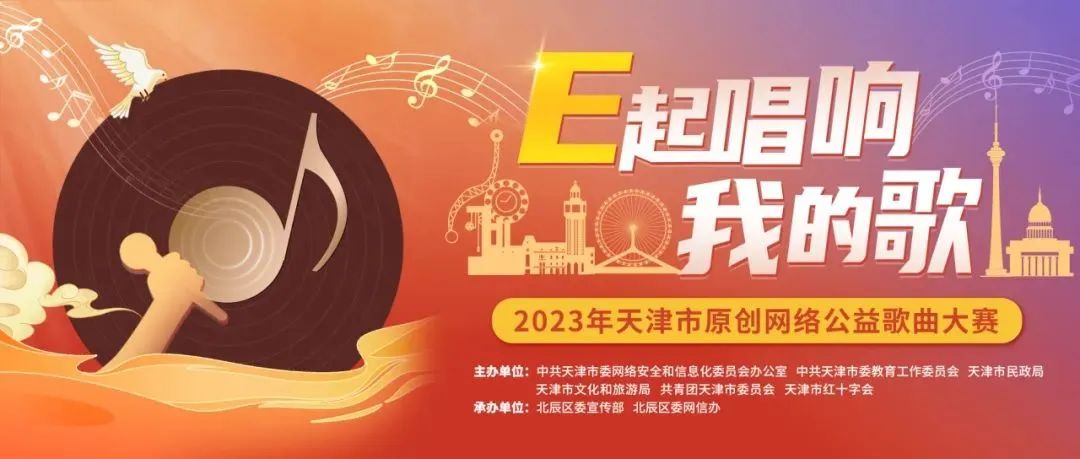 近日,由中共天津市委网络安全和信息化委员会办公室、中共天津市委教育工作委员会、天津市民政局、天津市文化和旅游局、共青团天津市委员会、天津市红十字会共同举办联合主办,北辰区委宣传部、北辰区委网信办承办的“E起唱响我的歌”2023年天津市原创网络公益歌曲大赛,歌曲征集工作完美收官。