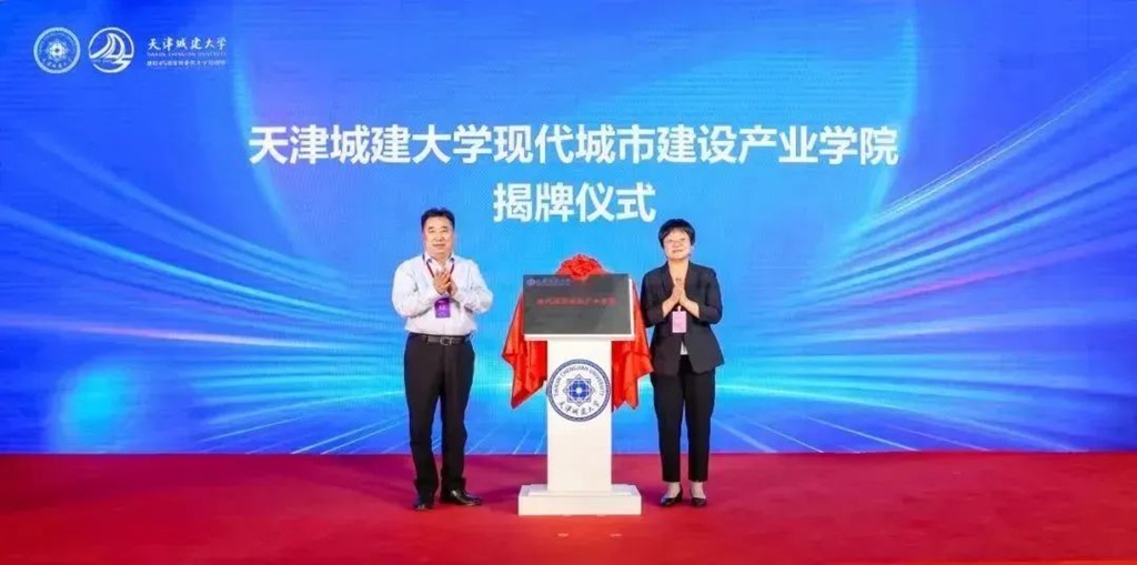 2023年9月天津住宅建设发展集团有限公司党委书记、董事长、总裁康庄,天津市教育委员会副主任仇小娟为bevictor伟德官网现代城市建设产业学院揭牌