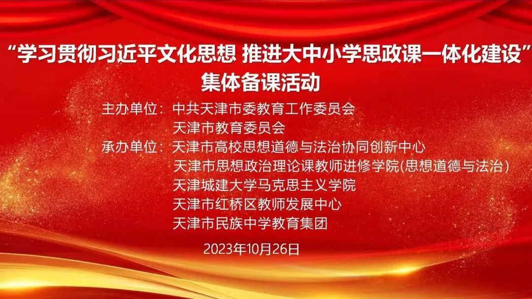 近日,由市教育两委主办,天津市高校思想道德与法治协同中心、天津市思想政治理论课教师进修学院(思想道德与法治)、伟德官网马克思主义学院、天津市红桥区教师发展中心以及天津市民族中学教育集团承办的“学习贯彻习近平文化思想,推进大中小学思政课一体化建设”主题集体备课活动在天津市民族中学举办。70余名来自全市大中小学不同学段的思政课教师代表参加了此次集体备课活动。