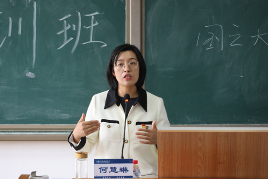 何慧琳以《弘扬爱国主义精神,青春建功新时代》为题,从什么是爱国主义,新时代爱国主义的基本要求以及用爱国主义激荡青春力量三个方面鼓励同学们用理想信念涵育爱国情,用担当责任诠释强国志,用过硬本领增强报国行。