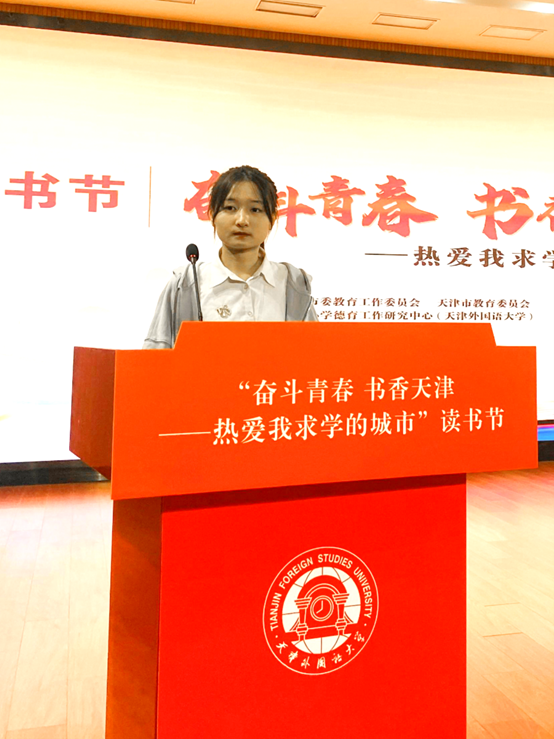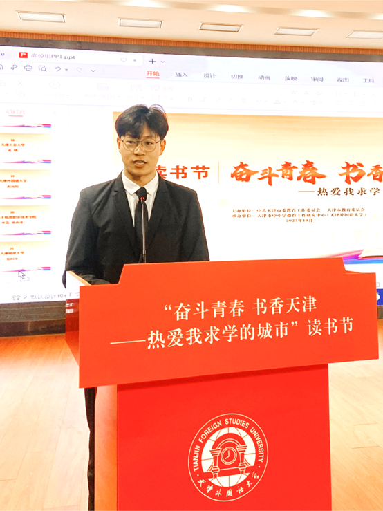 本次大赛由市委教育工委、市教委主办,共有15所院校21位学生进入市级评审展示(高校组)环节。活动评选筹备期间,学校图书馆、学工部、团委密切协同,扎实做好活动宣传与赛事准备,依托图书馆资源举办天津系列主题书展,以丰富的载体提高学生参与度,组织各二级学院面向全体学生在校内先期举办选拔赛,扩大了活动的知晓度与影响力。