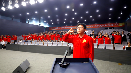 第三期“红旗班”学员代表,经济与管理学院石晨虹同学发言。她表示会好好珍惜、牢牢把握学校为“红旗班”学员搭建的平台,认真学习,汲取养分,不断提高自身政治素养和党性修养,在学习和工作中凸显学生党员排头兵硬核属性,以青年之身影响青年之心,彰显青春答卷人的风采;以青春之我、奋斗之我建功立业,书写奋斗华章。