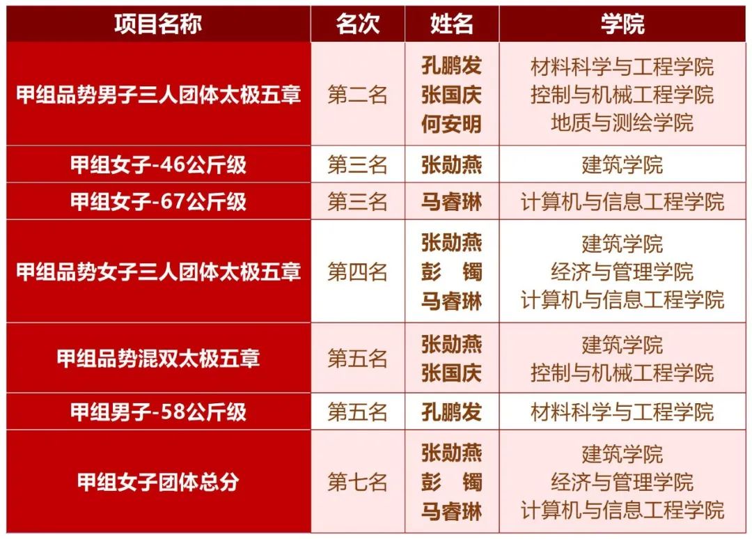 为备战此次比赛,体育部李正、刘丽和王晓乐三位老师精心选拔校跆拳道代表队队员,详细制定训练计划,科学指导训练,赛前队员们放弃休息,利用每天早操、午休和晚上的时间积极组织训练,研究制定比赛战术。比赛中队员们敢打敢拼,在赛场上发挥出天城大学子拼搏竞争的体育精神,一路披荆斩棘,最终斩获佳绩。