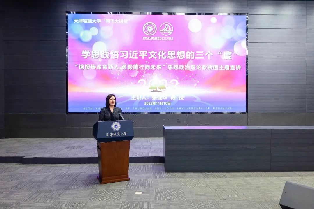 “鸣飞大讲堂”作为学校理论宣讲品牌,一直以来坚持开展分众化、互动化、全覆盖的宣讲,将理论宣讲与学科建设相结合,深化产教融合、科教融汇,指引师生投身重大科技创新;将理论宣讲与教育教学相结合,聚焦人才培养“主战场”,着力培养复合型应用人才;将理论宣讲与全面推进“大思政课”建设、深化爱国主义教育相结合,充分发挥思政工作的引领作用和思政课主渠道作用,引领广大师生深钻细研党的二十大精神,并从中汲取养分,凝聚奋进力量。汇聚全体师生智慧推动学校高质量发展,为加快建设教育强国、科技强国、人才强国贡献天城大力量,奋力书写以中国式现代化全面推进中华民族伟大复兴的新篇章。