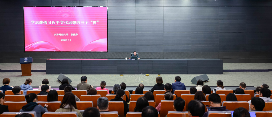 11月10日,学校举办“鸣飞大讲堂”宣讲活动,邀请天津财经大学马克思主义学院张健华教授,走进bevictor伟德官网校园,以《学思践悟习近平文化思想的三个“度”》为主题作专题讲座。学校二级单位党组织理论学习中心组全体成员、全体处级干部及师生代表约400人参加。讲座由校党委常委、党委宣传部部长杨静主持。