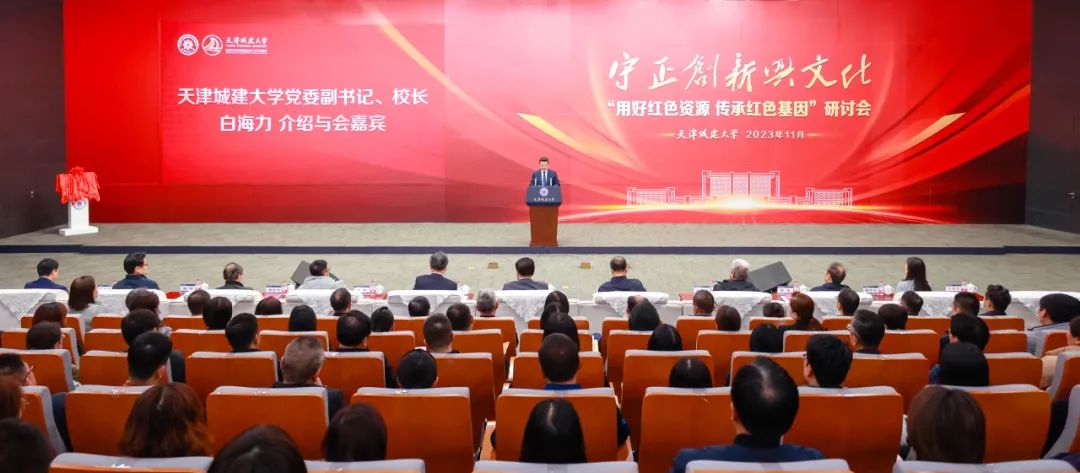 中共天津市委宣传部副部长徐中,天津市委教育工作委员会专职副书记孙志良,天津市委党校副校长、市委党史研究室主任王永立,辽宁省文旅厅原副厅长、文物局原局长丁辉,中国文物学会副会长、河北省文物局原局长张立方,北京市特聘教授、北京工业大学建规学院原党委书记杨昌鸣,天津市文博学会会长、天津博物馆原馆长陈卓,天津博物馆馆长姚旸,天津市委宣传部宣教处处长郝丹丹、天津市教育两委宣传处处长许瑞、天津市委党校地方党史研究处处长周巍、天津市文物局革命文物处处长刘向党等嘉宾出席研讨会。校党委书记史庆伟,校党委副书记、校长白海力,以及其他校领导,全体处级干部及师生代表等400余人参加研讨会。