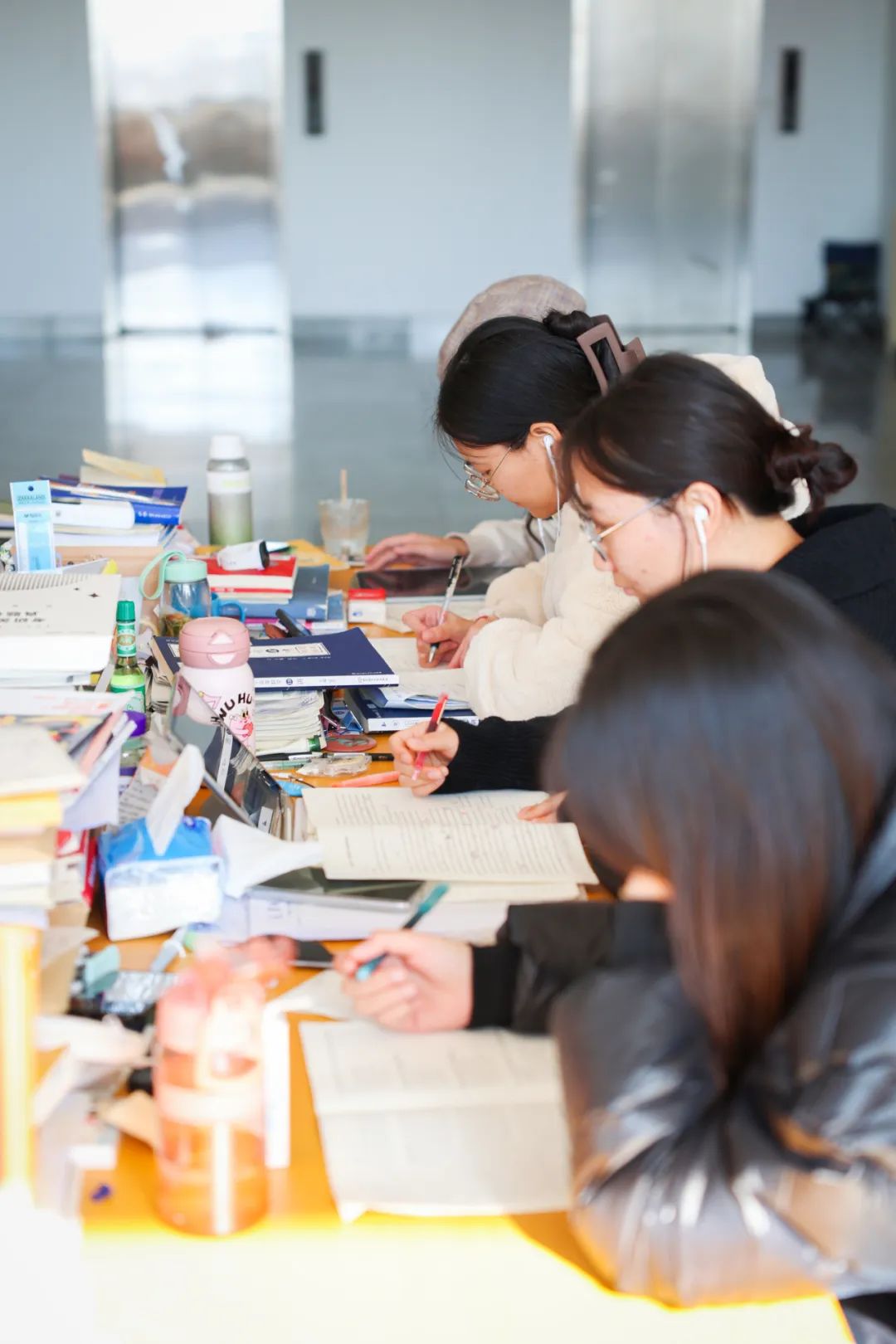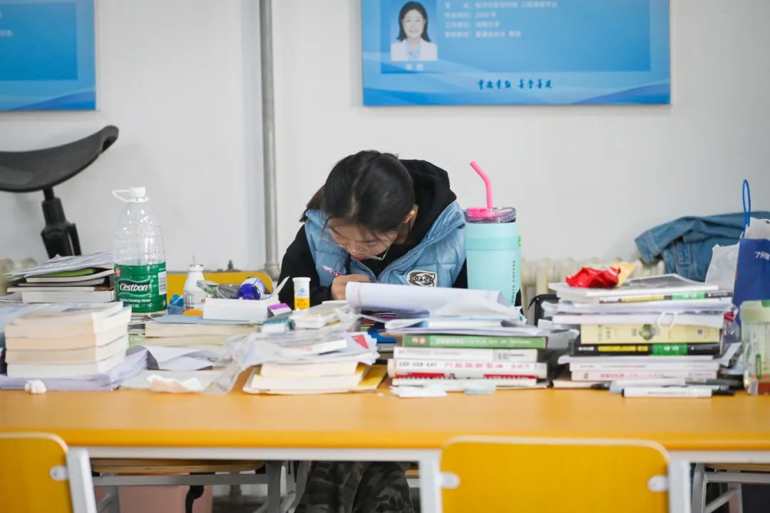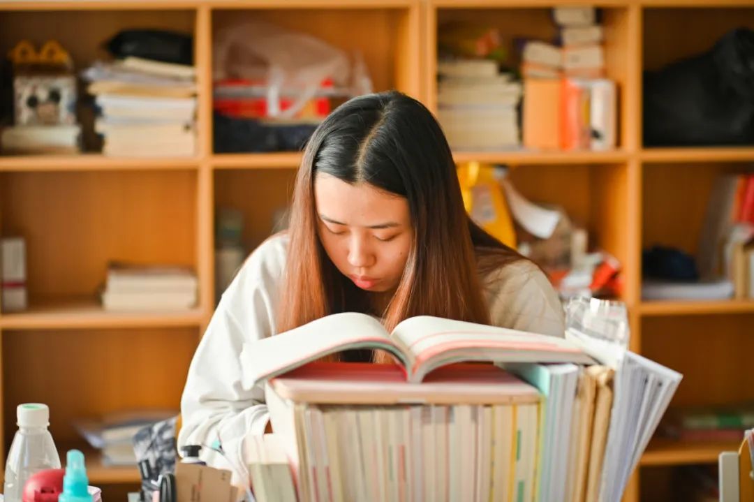 自习室里堆起的一本本书