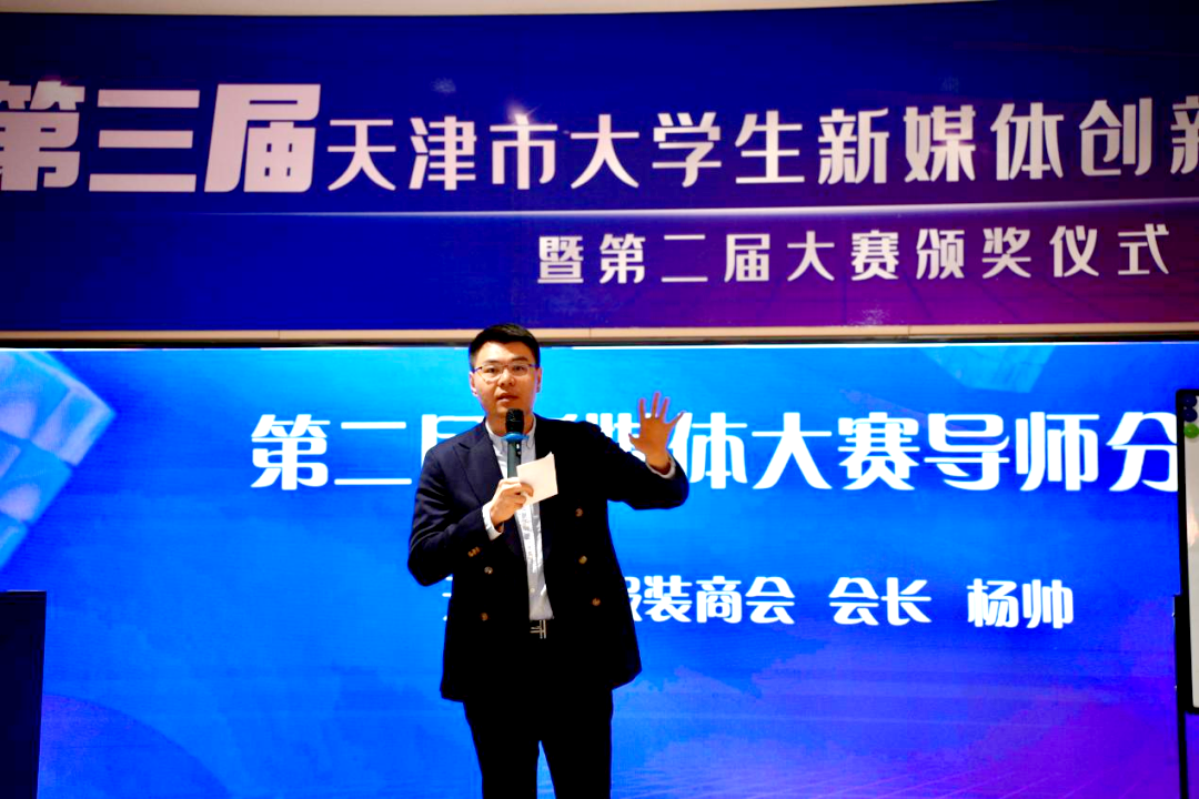 天津市服装商会会长杨帅作为第二届大赛指导教师分享了赛事感悟,他讲到,最真切的感受是大赛使产业与学生实现了近距离接触,让企业可以真正的触及到学生的感受和求学过程中的困惑,同时反思企业在招聘人才过程中的不足。此外,他从企业需求的角度详细解读了大赛各项赛道中涵盖的商业需求与参赛逻辑,希望参赛师生通过优质的视频内容塑造企业品牌形象,通过大量的新媒体流量,带动企业产品复购率的提升,借助新媒体形式促进企业开拓新的经济增长点。